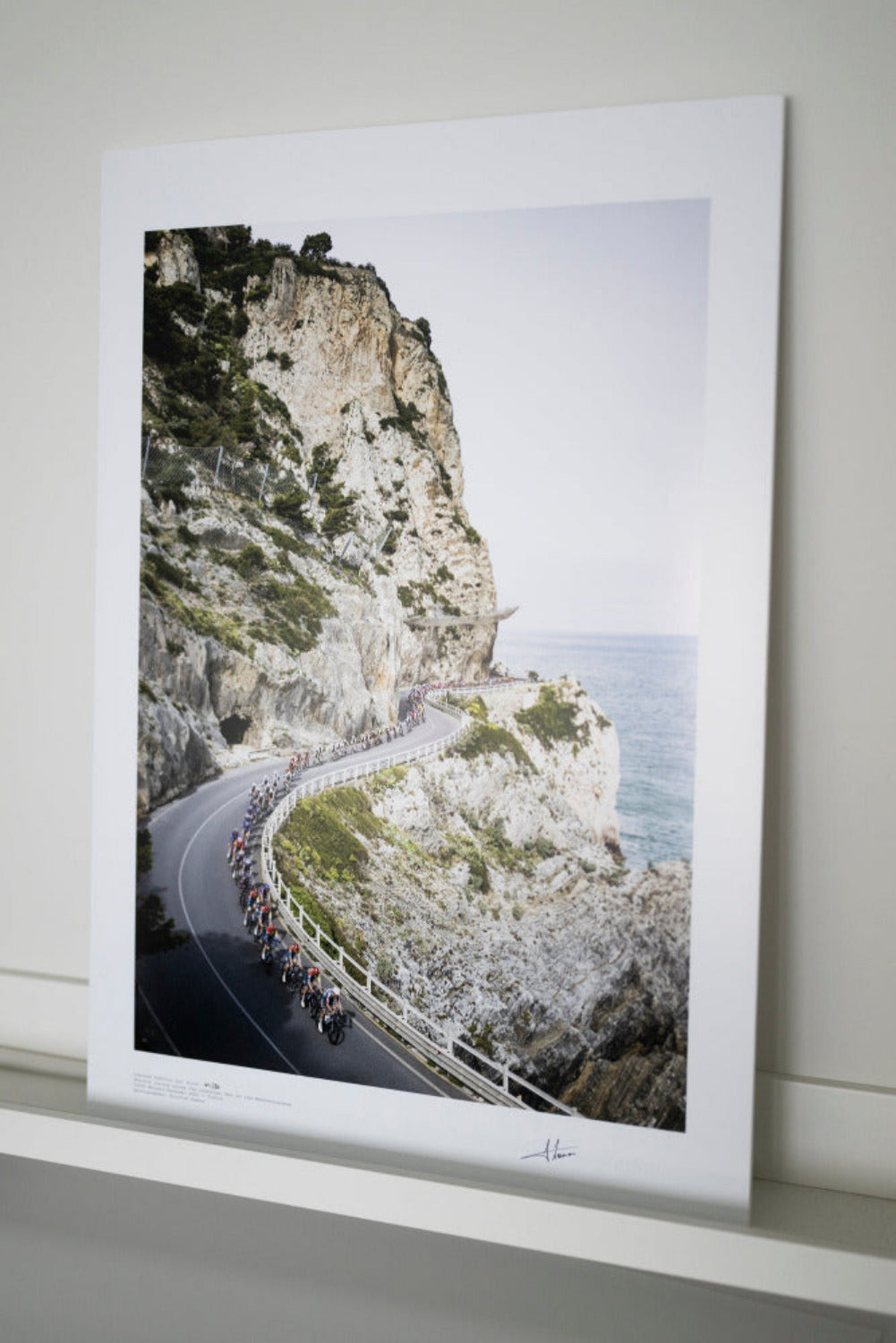 “Ligurian Sea Peloton” is a museum-grade photo print from the Classic Velo Collection — a series of my personal favourite pics celebrating the atmosphere, motion, and iconic landscapes of cycling. Rather than focusing on a single rider, these prints capture the spirit of the sport itself.