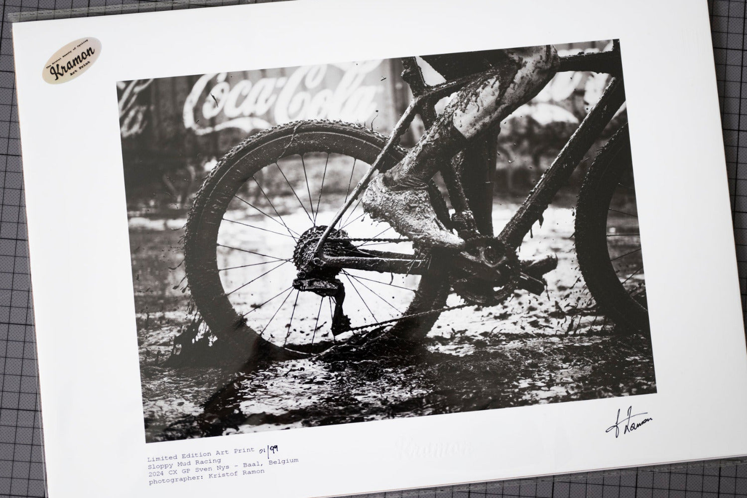“Sloppy Mud Racing” is a museum-grade photo print from the Classic Velo Collection - a series of my personal favourite pics celebrating the atmosphere, action and iconic landscapes of cycling. Rather than focusing on a single rider, these prints capture the spirit of the sport itself.