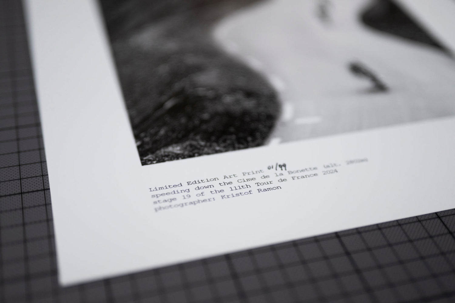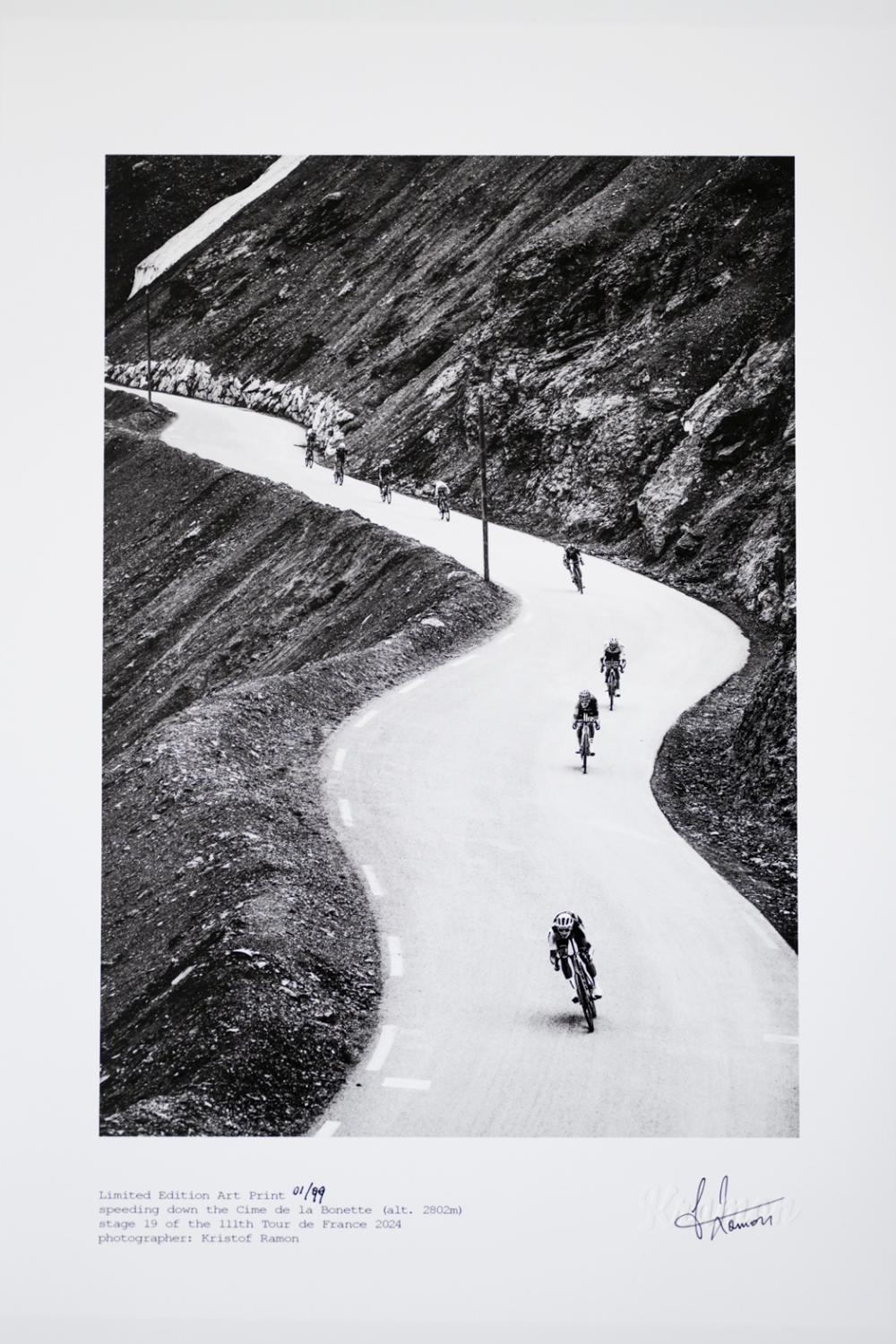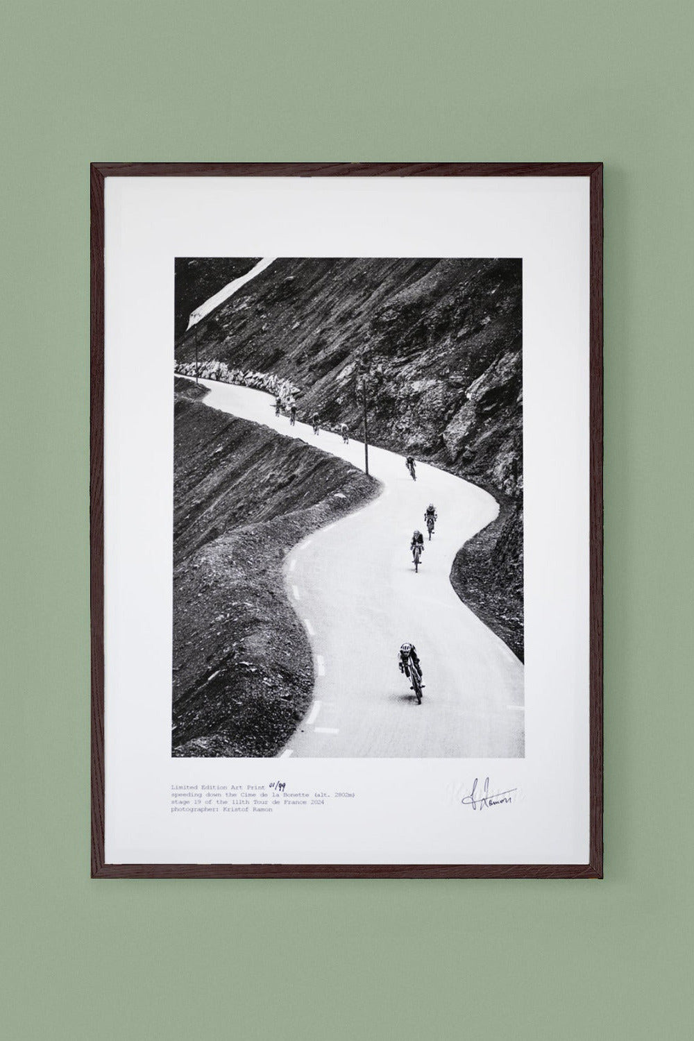“Speeding Down” is a museum-grade photo print from the Classic Velo Collection — a series of my personal favourite pics celebrating the atmosphere, action and iconic landscapes of cycling. Rather than focusing on a single rider, these prints capture the spirit of the sport itself.